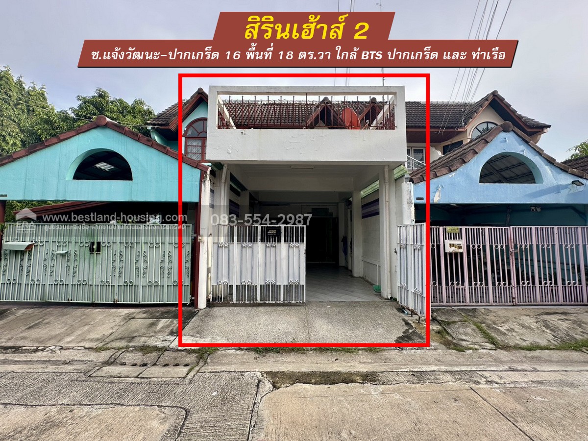 ขายทาวน์เฮ้าส์ หมู่บ้านสิรินเฮ้าส์2 แจ้งวัฒนะ-ปากเกร็ด 16 นนทบุรี ทะลุ แจ้งวัฒนะ-ปากเกร็ด 4 ได้ พื้นที่ 18 ตร.วา ใกล้ BTS ปากเกร็ดและท่าเรือ