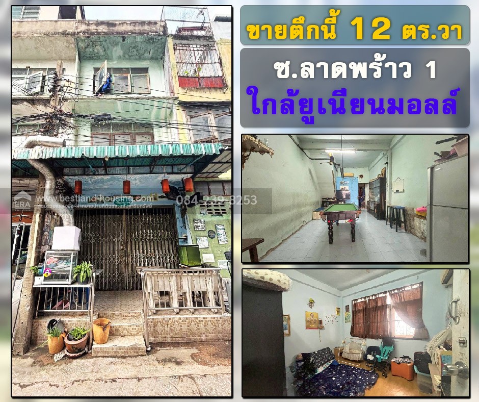 ขายตึกแถว 3 ชั้นทำเลลาดพร้าว 1 พื้นที่ 12 ตรว. ใกล้ยูเนี่ยนมอลล์ / เซ็นทรัลลาดพร้าว / เมเจอร์รัชโยธิน ทำเลทองใจกลางเมือง และยังใกล้รถไฟฟ้า MRT พหลโยธิน และ BTS ห้าแยกลาดพร้าว