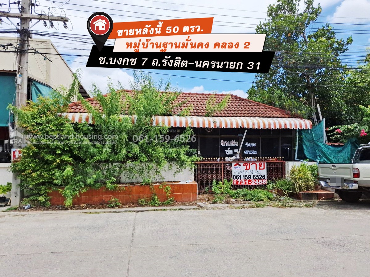 ขายบ้านเดี่ยว หมู่บ้านฐานมั่นคง คลอง 2 รังสิต-นครนายก ซ.บงกช 7 พื้นที่ 50 ตร.วา ใกล้วัดธรรมกาย-มอเตอร์เวย์-ตลาดไท