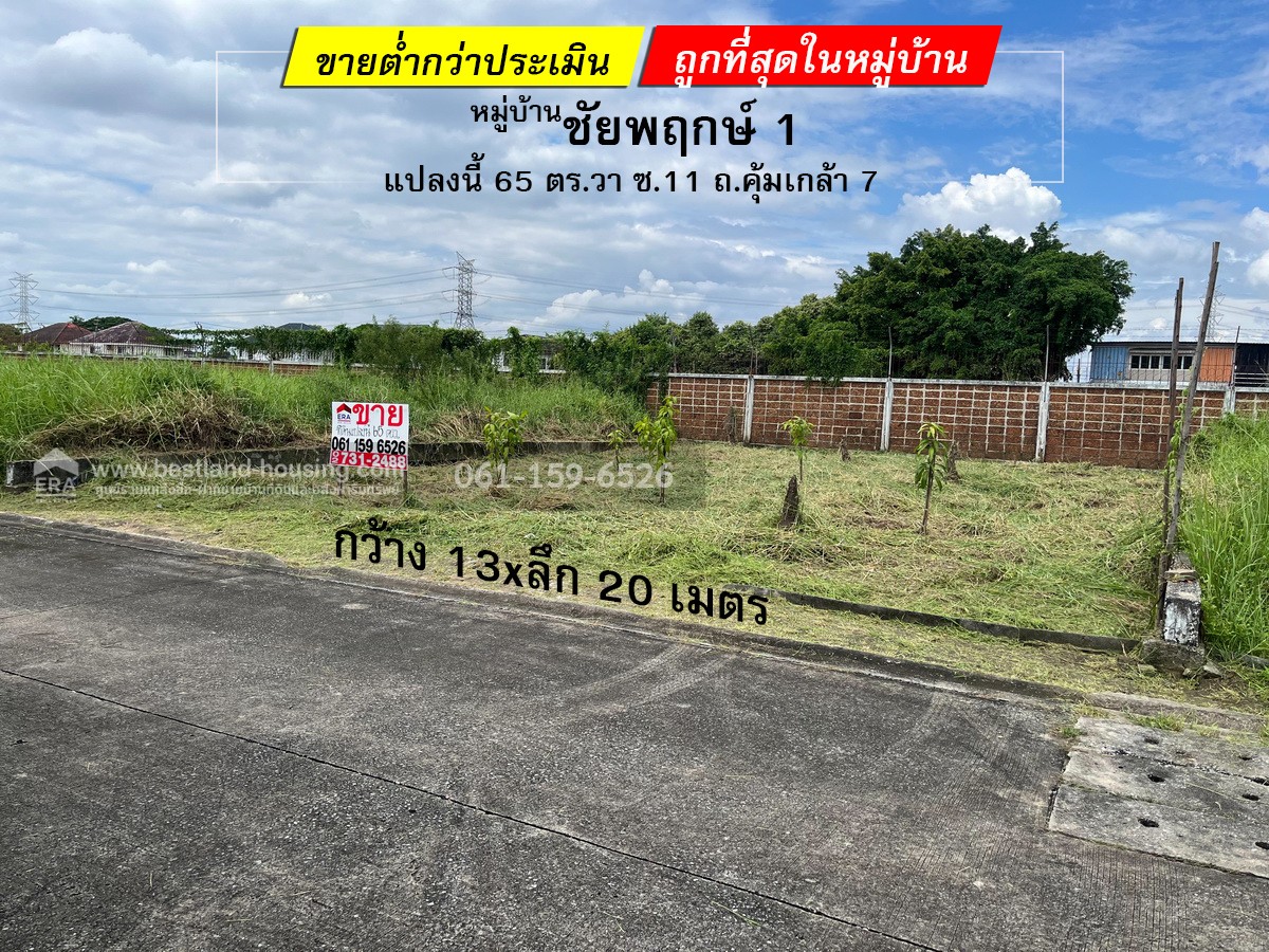 ขายที่ดิน หมู่บ้านชัยพฤกษ์ 1-ลาดกระบัง ถ.คุ้มเกล้า 7 พื้นที่ 65 ตร.วา ขายถูกที่สุดในหมู่บ้าน ขายต่ำกว่าราคาประเมิน เหมาะสร้างบ้านหรือลงทุน