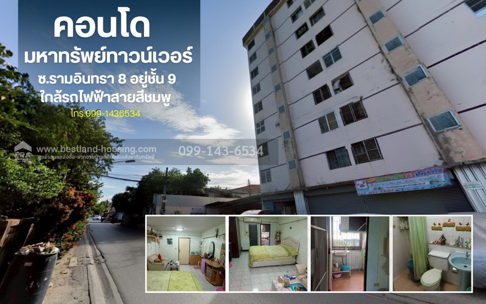 ขายคอนโดมหาทรัพย์ ทาวน์เวอร์ ซอยรามอินทรา 8 พื้นที่ 27.8 ตรม.ขาย 450,000.-บาท อยู่ชั้น 9 ใกล้รถไฟฟ้าสายสีชมพู สถานีรามอินทรากม.4 200 เมตร