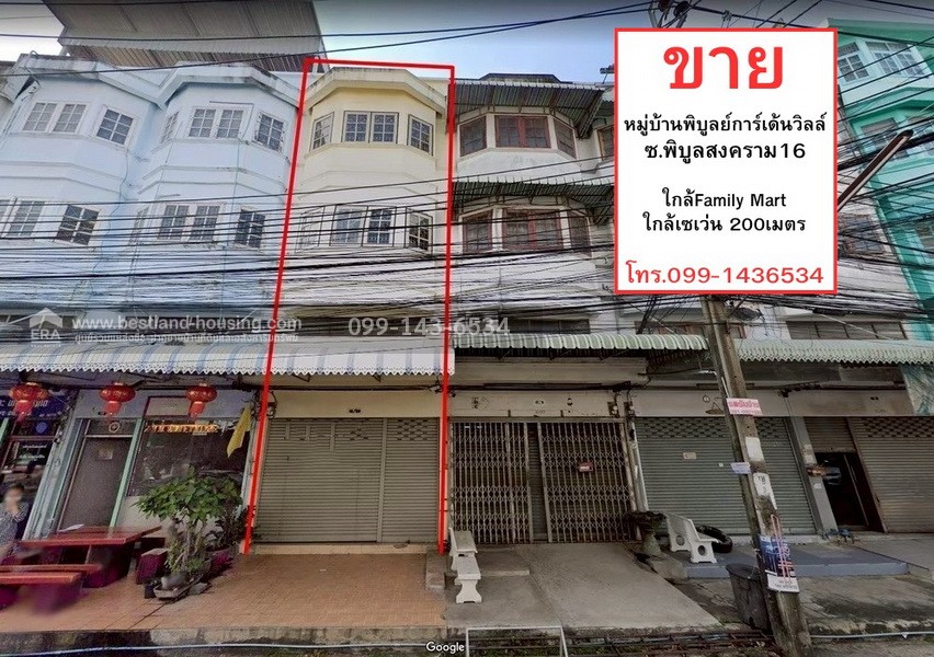 ขายตึกแถว3.5ชั้น หมู่บ้านพิบูลย์การ์เด้นวิลล์ ซ.พิบูลสงคราม16 พื้นที่ 17.4 ตารางวา ขาย 3.55 ล้านใกล้Family Mart,เซเว่น 200เมตร ต.สวนใหญ่ อ.เมืองนนทบุรี จ.นนทบุรี