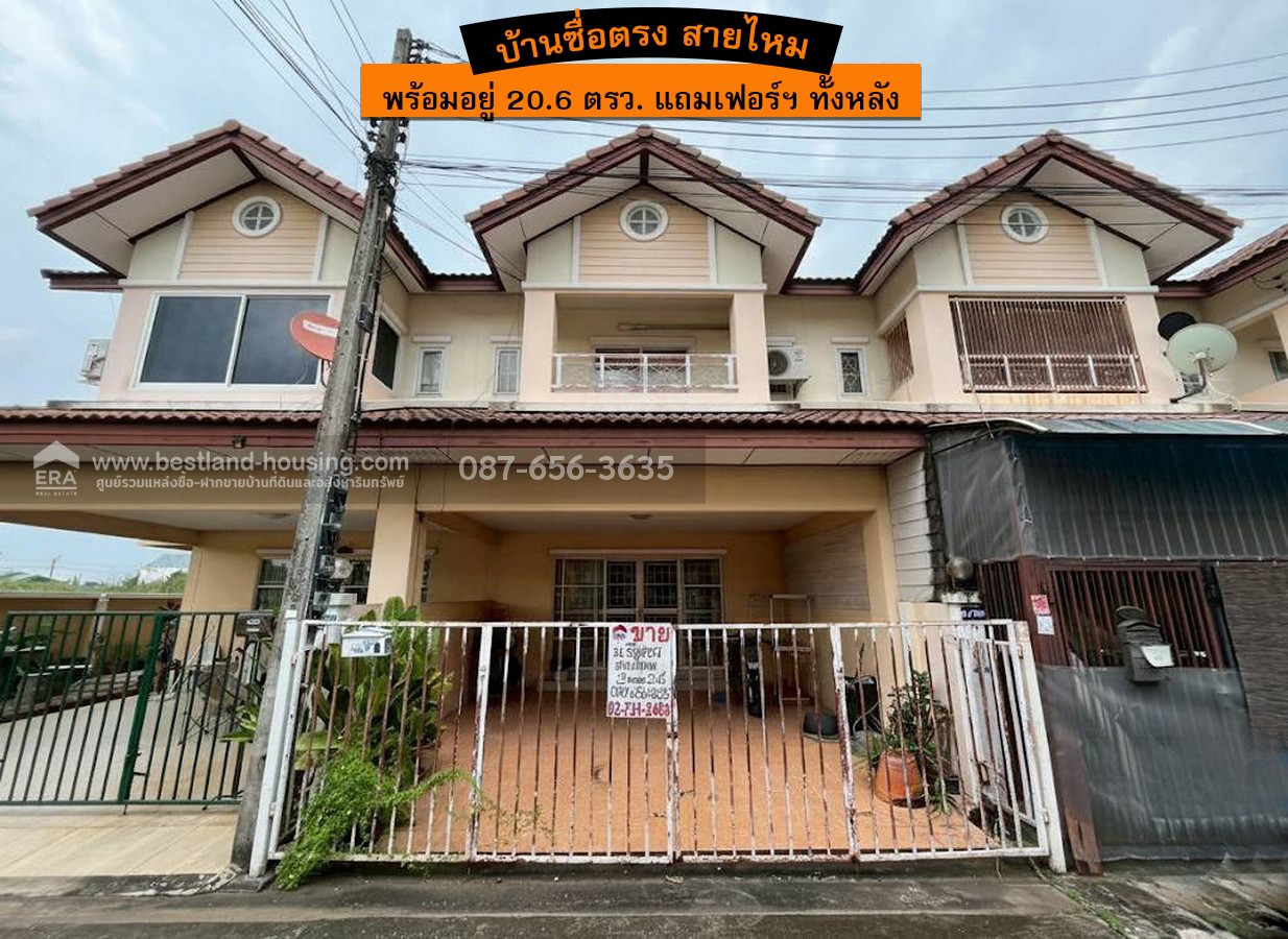 ขายทาวน์เฮ้าส์ หมู่บ้านซื่อตรง สายไหม-ลำลูกกา ปทุมธานี บ้าน 2 ชั้น ขนาดกำลังดี 20.6 ตรว. แถมเฟอร์นิเจอร์ทั้งหลัง พร้อมเข้าอยู่ทันที
