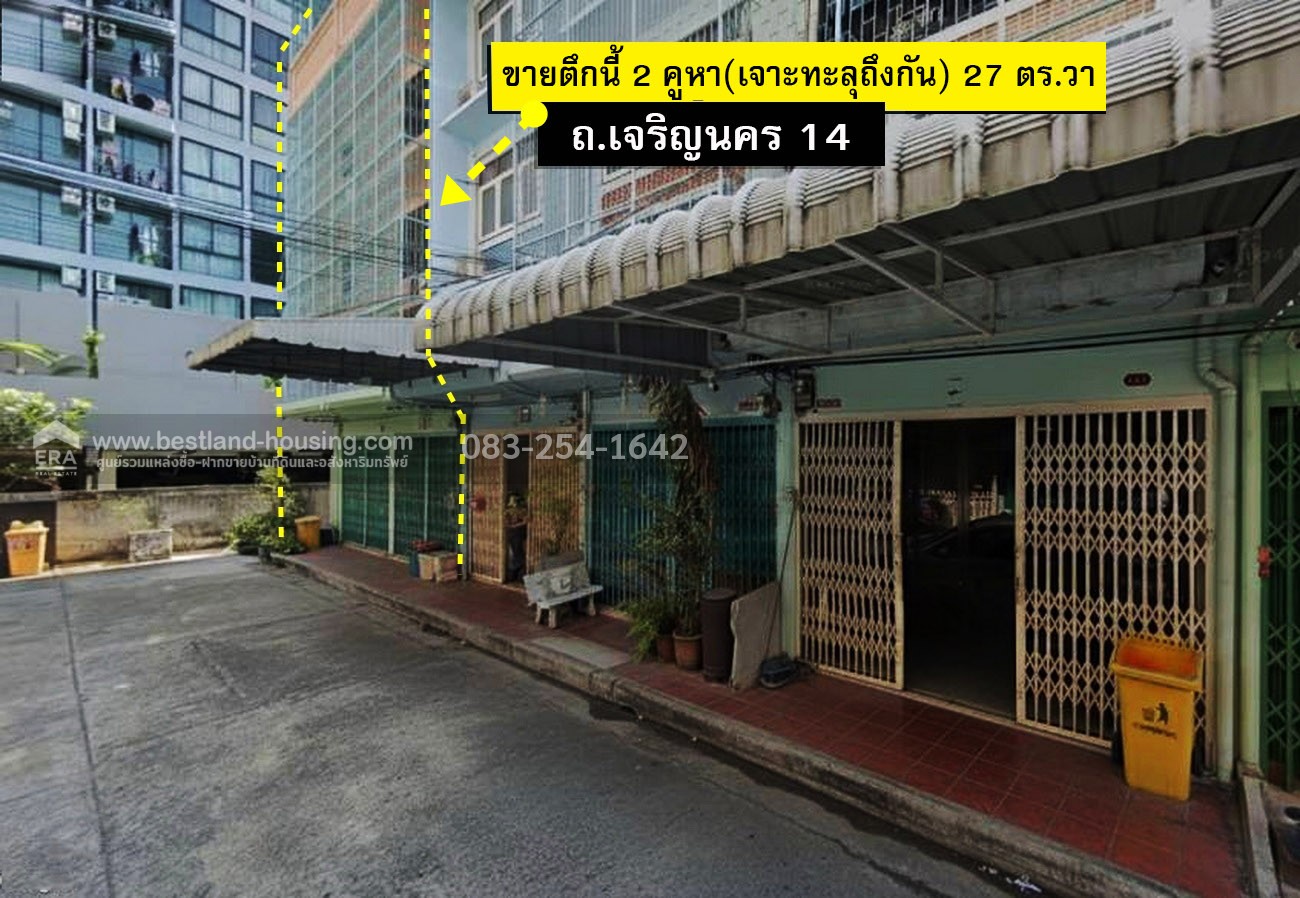ขายอาคารพาณิชย์ ถ.เจริญนคร 14 ใกล้ ICONSIAM, รพ.ตากสิน และ BTS กรุงธนบุรี-คลองสาน ตึก 4.5 ชั้น 2 คูหา 27 ตร.วา ทำเลทอง เหมาะลงทุนหรือปล่อยเช่า