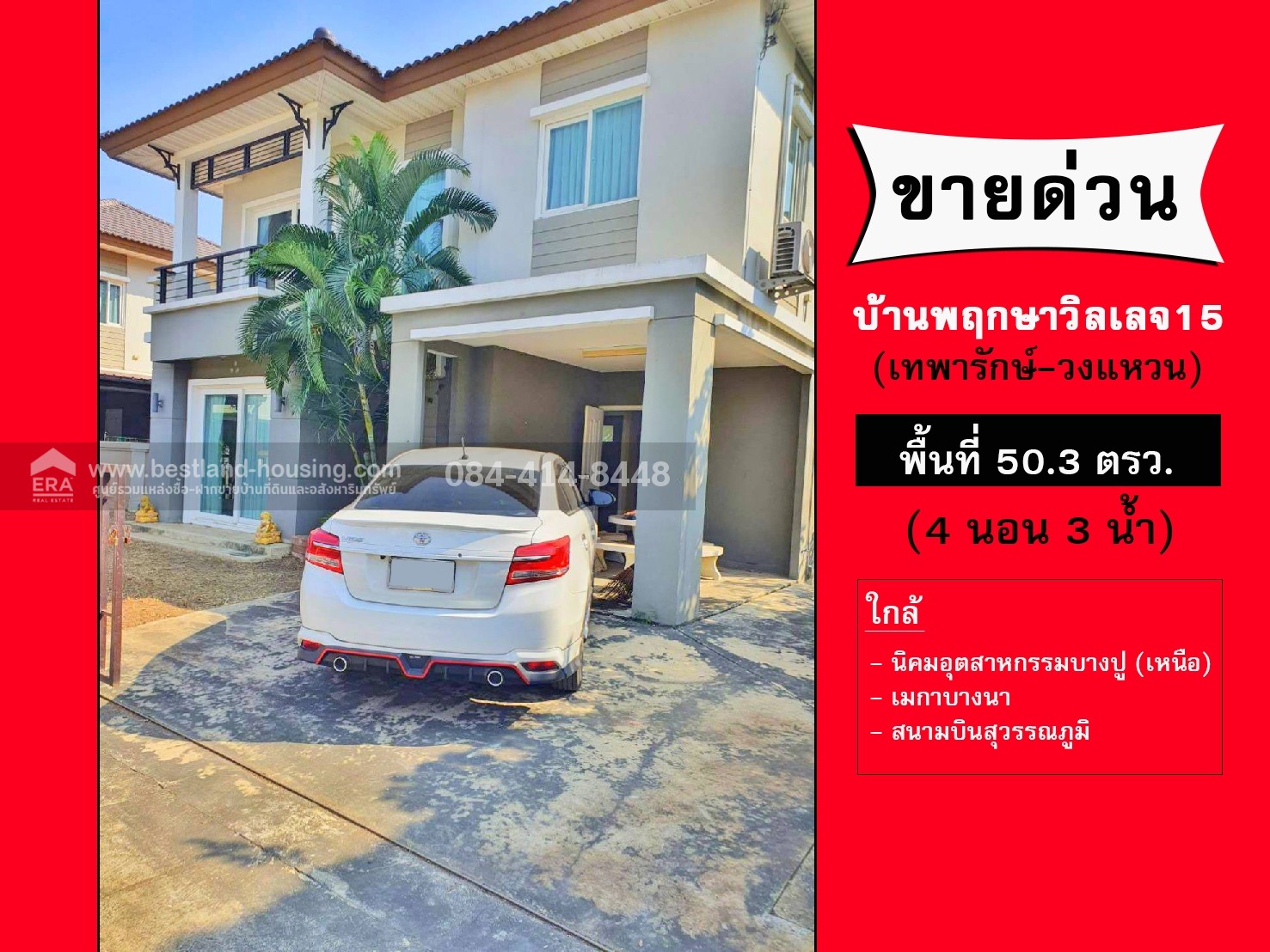 ขายบ้านเดี่ยว 2 ชั้น หมู่บ้านพฤกษาวิลเลจ15 (เทพารักษ์-วงแหวน) สมุทรปราการ พื้นที่ 50.3 ตรว. ใกล้นิคมอุตสาหกรรมบางปู (เหนือ)
