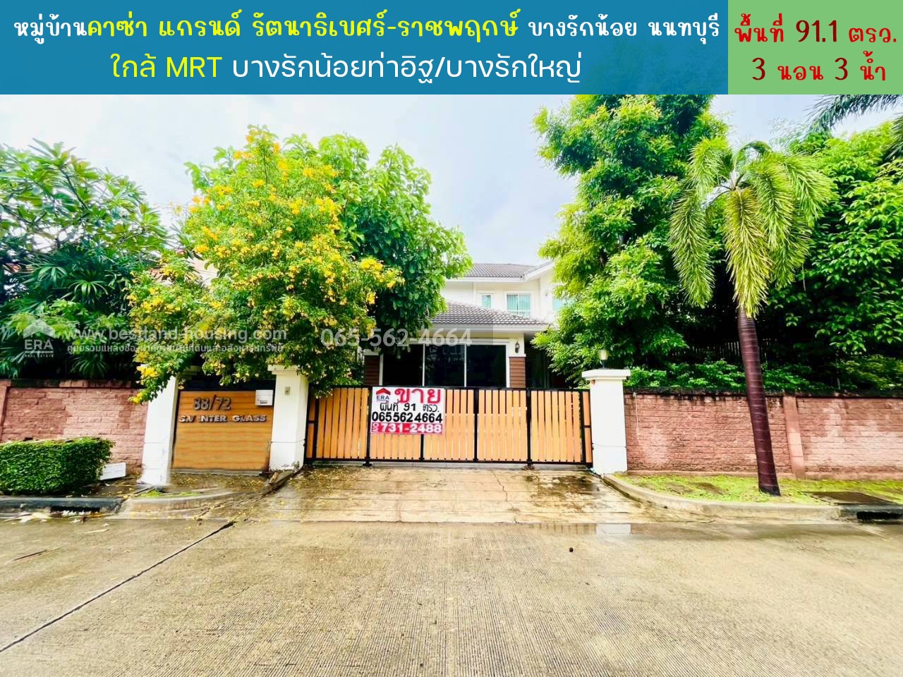 ขายบ้านเดี่ยว หมู่บ้านคาซ่า แกรนด์ รัตนาธิเบศร์-ราชพฤกษ์ บางรักน้อย นนทบุรี พื้นที่ 91.1 ตรว. ใกล้ MRT บางรักน้อยท่าอิฐ/บางรักใหญ่