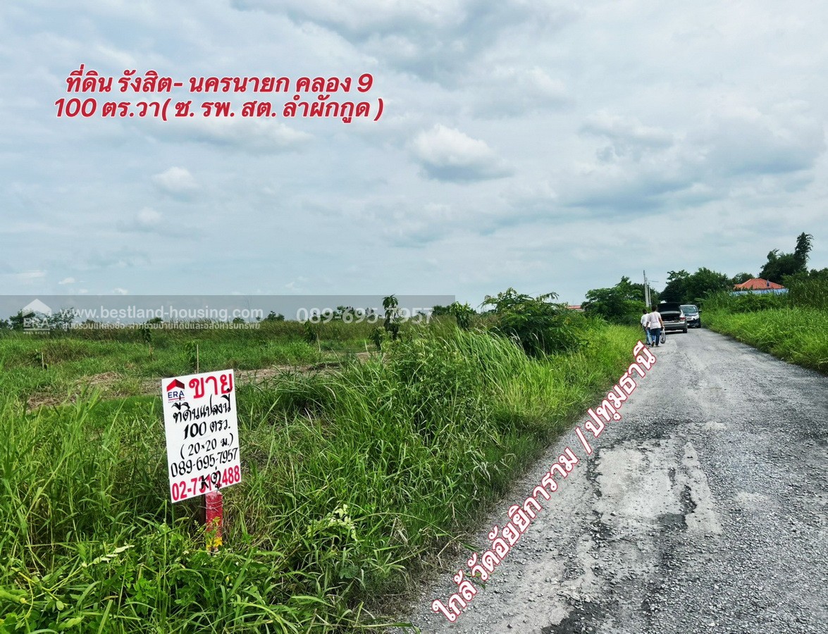 ขายที่ดิน รังสิต-นครนายก คลอง9 (ขาออก) ปทุมธานี 100 ตร.วา ซอย รพ.ส่งเสริมสุขภาพ ต.ลำผักกูด ธัญบุรี ใกล้วัดอัยยิการาม ราคาถูกเท่าประเมิน