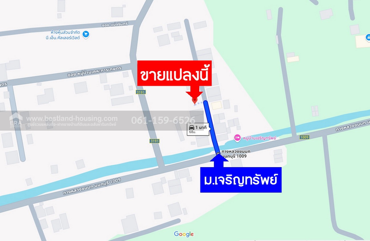 - ที่ดินเปล่า 60 ตรว. หมู่บ้านเจริญทรัพย์ ถ.ทางหลวงชนบท นนทบุรี 1009