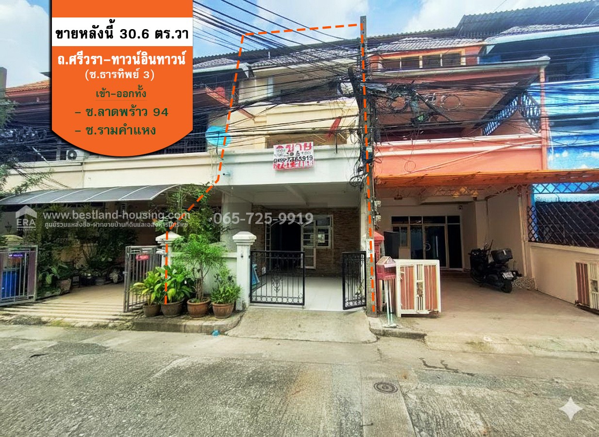 ขายทาวน์เฮ้าส์ 3.5 ชั้น ถ.ศรีวรา–ทาวน์อินทาวน์ (ซ.ธารทิพย์ 3) ทำเลทอง 30.6 ตร.วา เข้า-ออก ทั้งซอยลาดพร้าว 94,รามคำแหง เชื่อมต่อถนนประดิษฐ์มนูธรรม (เลียบด่วนรามอินทรา–อาจณรงค์)