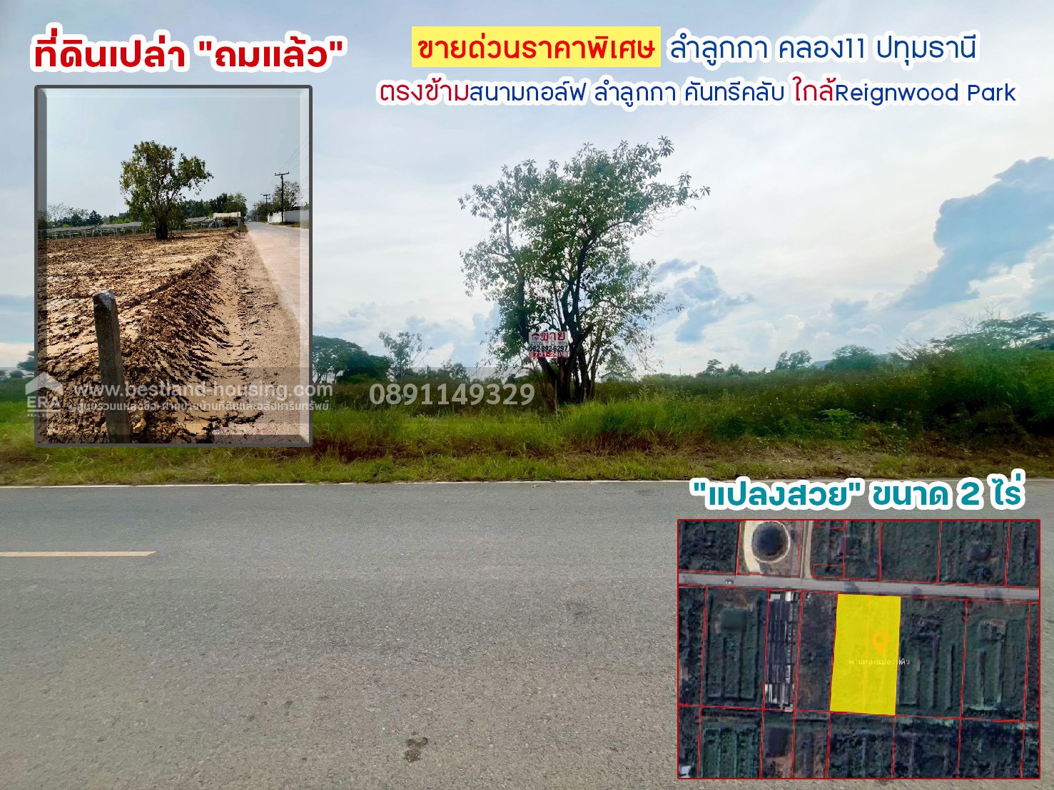 ขายที่ดิน ลำลูกกา คลอง11 ปทุมธานี ขนาด 2 ไร่ ถมแล้ว แปลงสวย ทำเลดี ขายด่วนราคาพิเศษ ใครมองหาที่ดินทำเลดีบอกเลยว่าห้ามพลาด ตรงข้ามสนามกอล์ฟ ลำลูกกา คันทรีคลับ ใกล้ Reignwood Park