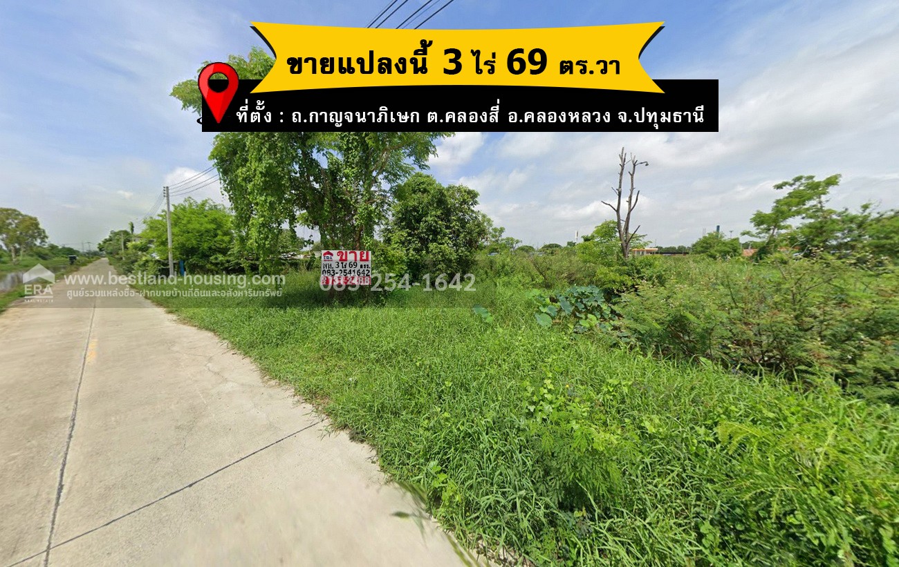 ขายที่ดินคลองสี่ คลองหลวง ปทุมธานี พื้นที่ 3 ไร่ 69 ตร.วา ใกล้ถนนใหญ่กาญจนาภิเษก-คลองแอน เหมาะสร้างโครงการ บ้านจัดสรร โกดัง หรือปั๊มน้ำมัน