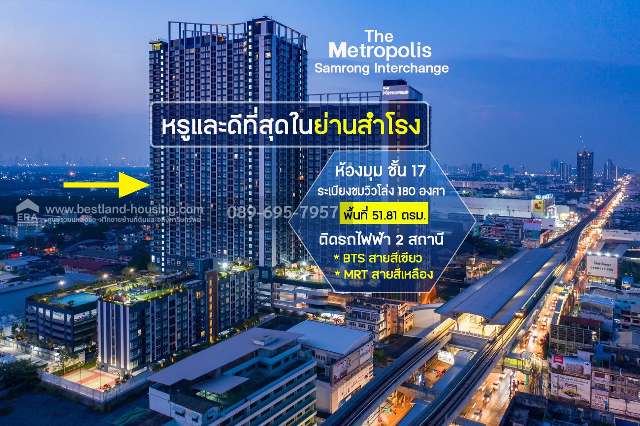 ขายคอนโด The Metropolis สำโรง อินเตอร์เชนจ์ ห้องมุม 51.81 ตร.ม. ชั้น 17 ติดรถไฟฟ้า 2 สาย BTS สีเขียว + MRT สีเหลือง ใกล้อิมพีเรียล สำโรง