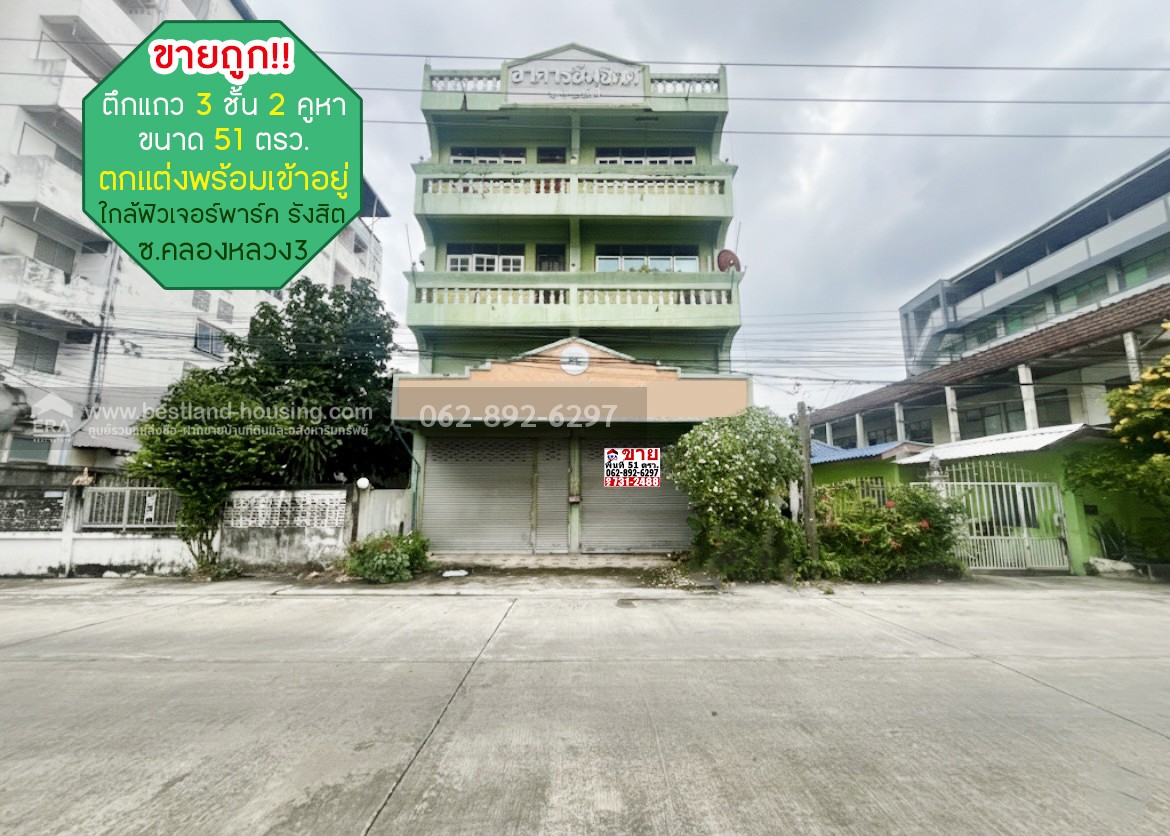 ขายตึกแถว 3 ชั้น ซอยคลองหลวง3 ถนนพหลโยธิน-รังสิต 2 คูหา ขนาด 51 ตรว. ตึกสวย ทำเลทอง ตกแต่งพร้อมเข้าอยู่ ขายเพียงแค่ 6.5 ล้านบาทเท่านั้น ขายถูกสุดในย่านนี้ ด่วน! ราคาดีแบบนี้ไม่มีอีกแล้ว สนใจโทร. 062-892-6297