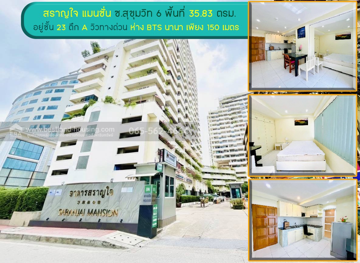 ขายสราญใจ แมนชั่น สุขุมวิท6 ย่านนานา พระโขนง พื้นที่ 35.83 ตรม. ใจกลางเมือง วิวทางด่วน ห่าง BTS สถานีนานา เพียง 150 เมตร