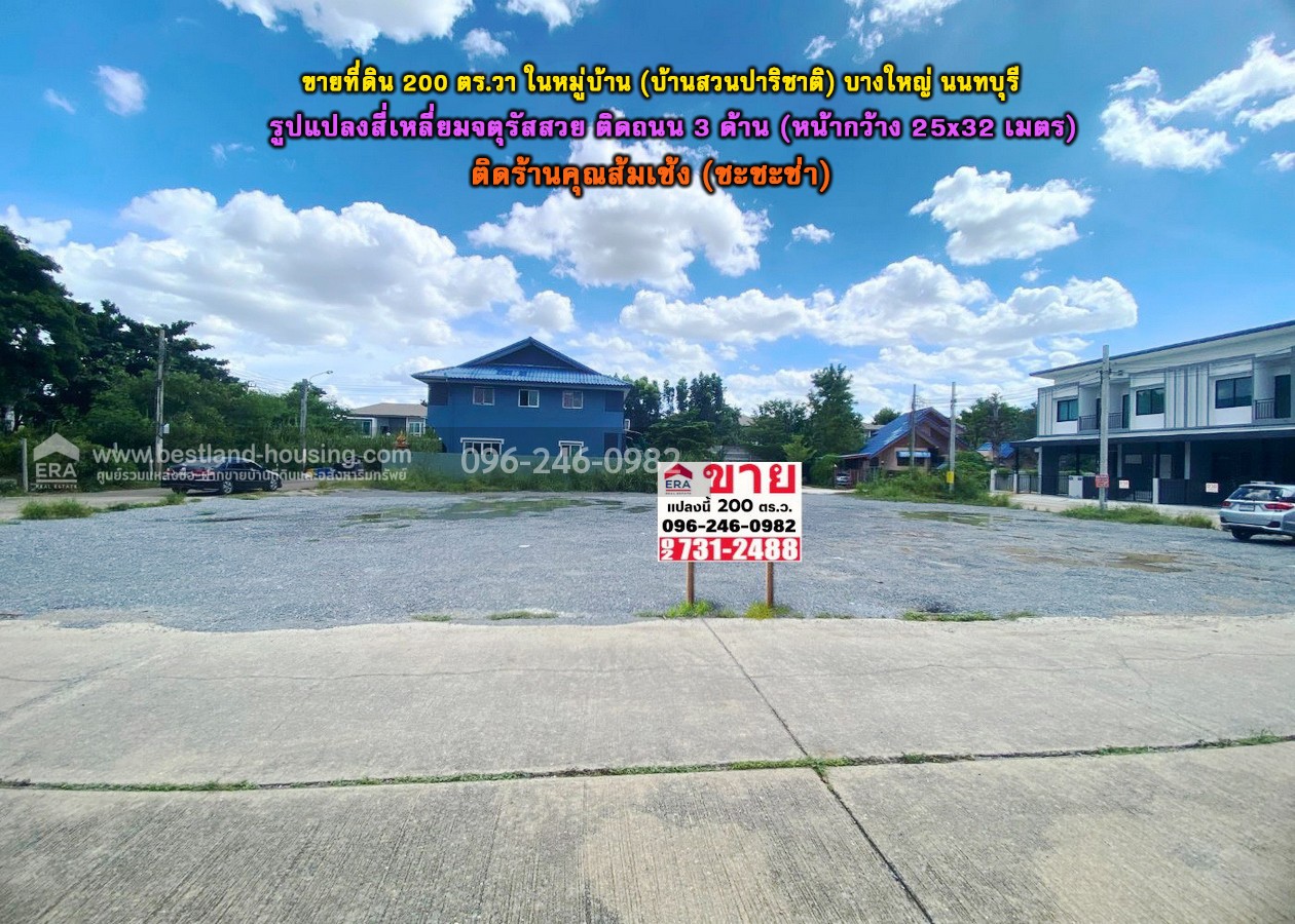 ขายที่ดินถมแล้ว บ้านสวนปาริชาติ บางใหญ่ นนทบุรี แปลงสี่เหลี่ยมจตุรัสสวย 200 ตร.วา ติดร้านคุณส้มเช้ง (ชะชะช่า) เหมาะสร้างบ้านหรือโกดัง ราคาปรับลงล่าสุดแล้ว