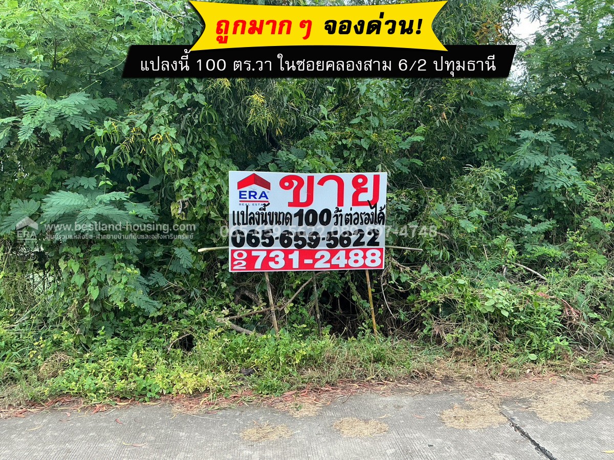 ขายที่ดิน ในซอยคลองสาม 6/2 ถ.คูคต-คลองหลวง ทะลุ ถ.คลองแอน ปทุมธานี พื้นที่ 100 ตร.วา ใกล้พระวัดธรรมกาย ถูกมากๆ จองด่วน