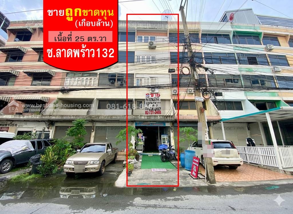 ขายตึก4ชั้น ซอยลาดพร้าว132 เข้าซอยแค่200เมตร เดิน1นาทีถึง7-11 ทำเลดี มีที่จอดรถ ขายถูกขาดทุนเกือบล้าน
