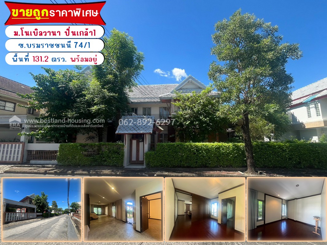 ขายบ้านเดี่ยว 2 ชั้น หมู่บ้านโนเบิลวานา ปิ่นเกล้า1 ซอยบรมราชชนนี74/1 ขนาด 131.2 ตรว. ลดราคาพิเศษ ขายเพียง 9,980,000 บาท ทำเลทองติดถนนหลัก ขายถูกสุดในย่านนี้ ด่วน!