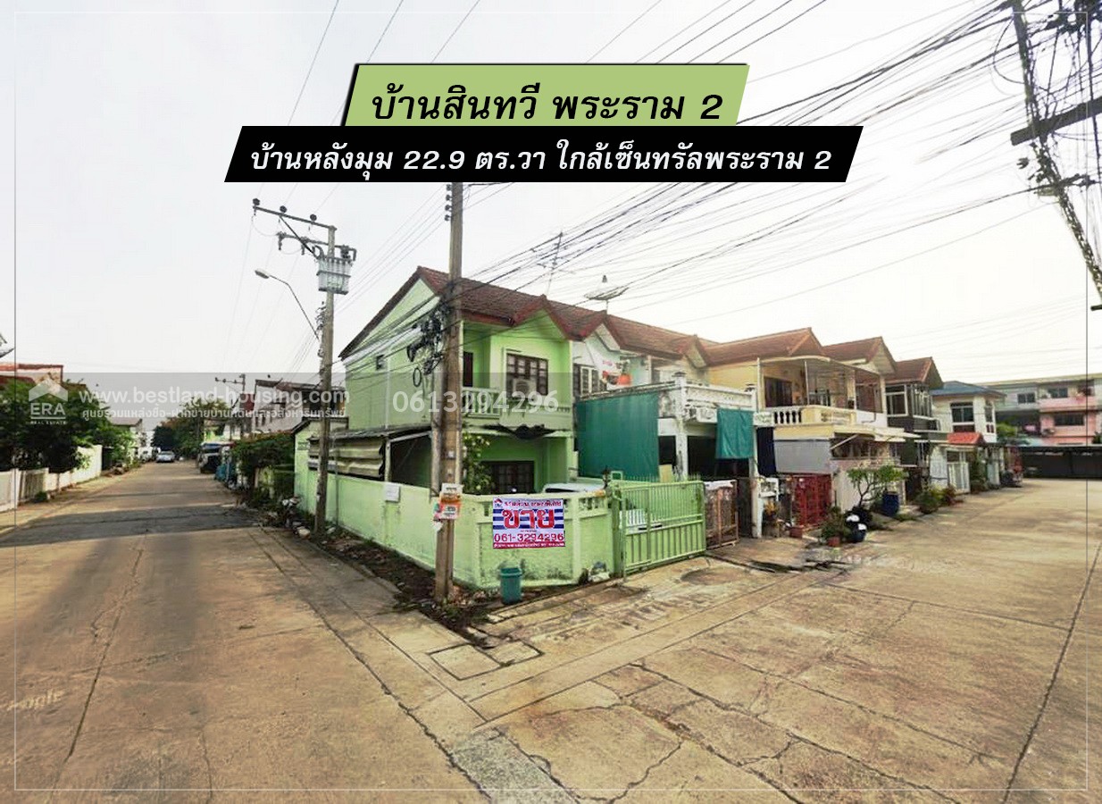 ขายทาวน์เฮ้าส์ หมู่บ้านสินทวี พระราม 2-บางขุนเทียน บ้านหลังมุม 22.9 ตร.วา ใกล้เซ็นทรัลพระราม 2 และวงแหวนกาญจนาภิเษก
