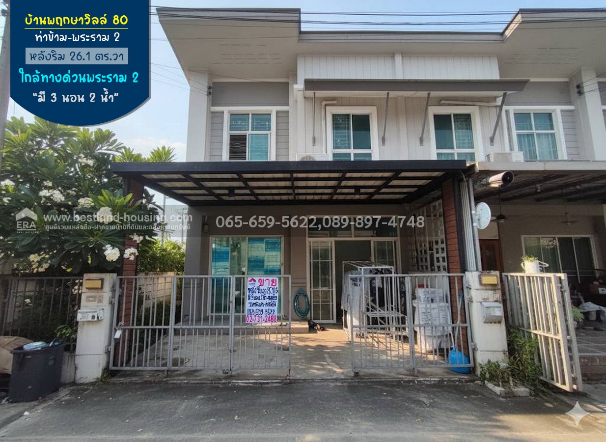 ขายทาวน์เฮ้าส์ บ้านพฤกษาวิลล์ 80 ท่าข้าม-พระราม 2 ถ.เทียนทะเล 7 หลังริม 26.1 ตร.วา ใกล้ทางด่วนพระราม 2-กาญจนาภิเษก