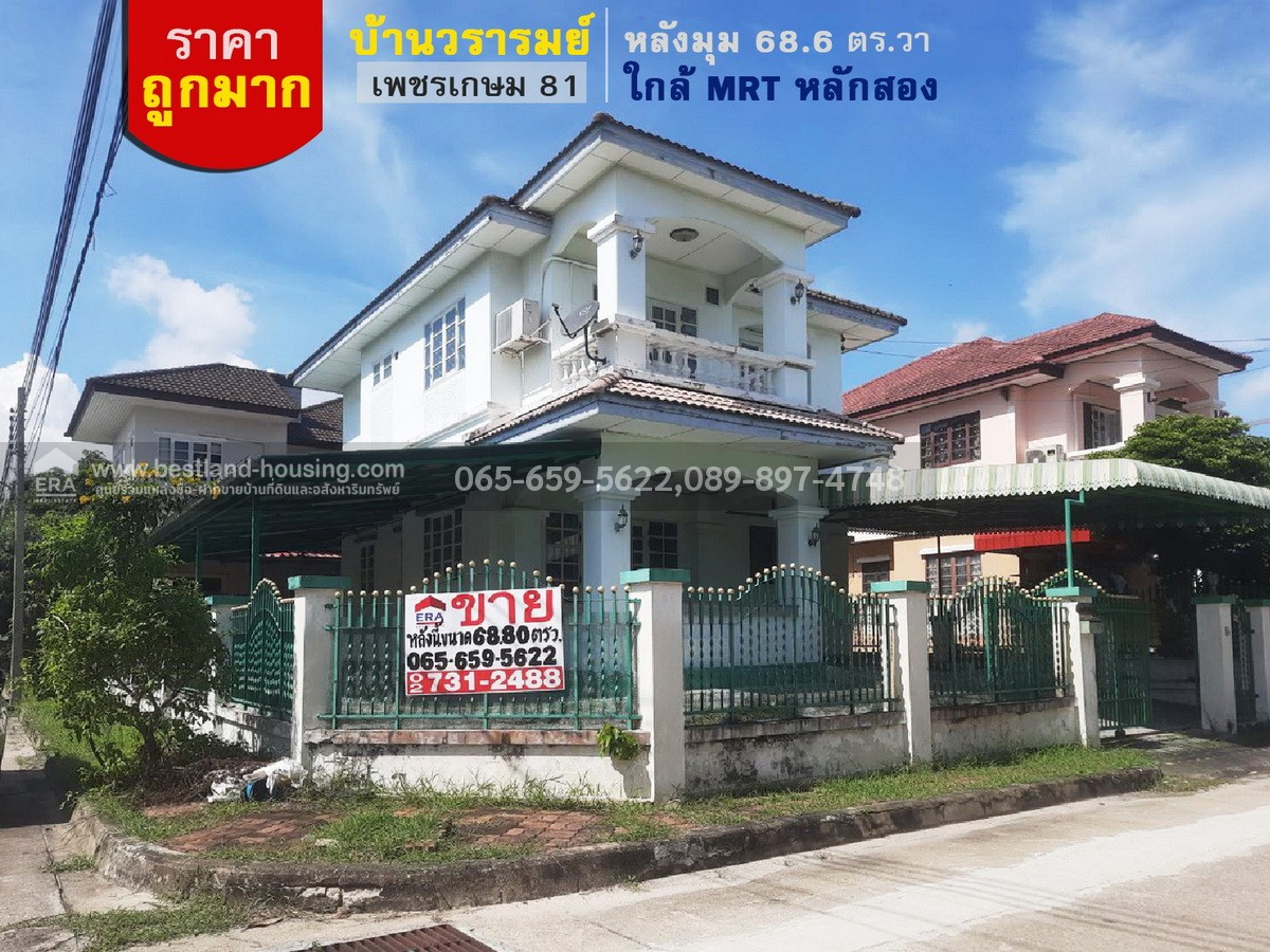 ขายบ้านเดี่ยว หมู่บ้านวรารมย์ เพชรเกษม 81 บางบอน 5 หลังมุม 68.6 ตร.วา ใกล้ MRT หลักสอง ราคาถูกมาก
