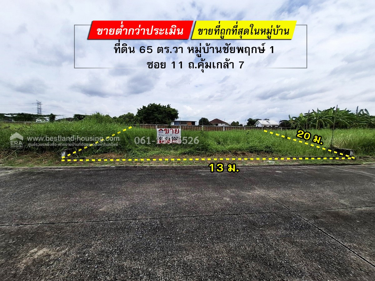 ขายที่ดิน หมู่บ้านชัยพฤกษ์ 1-ลาดกระบัง ถ.คุ้มเกล้า 7 พื้นที่ 65 ตร.วา ขายที่ถูกที่สุดในหมู่บ้าน ขายต่ำกว่าราคาประเมิน เหมาะสร้างบ้านหรือลงทุน