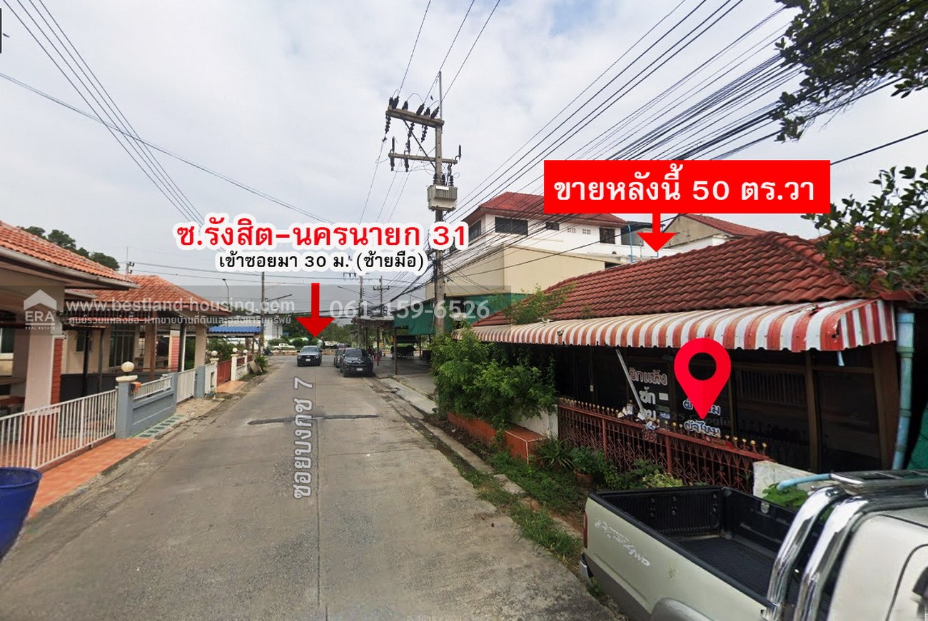 - บ้านเดี่ยว 1 ชั้น 50 ตรว. หมู่บ้านฐานมั่นคง ซ.บงกช 7 ถ.รังสิต-นครนายก 31