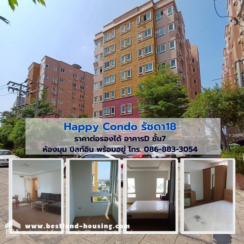 ขายHappy Condo รัชดา18 ราคาต่อรองได้ อาคารD ชั้น7 ห้องมุม บิลท์อิน พร้อมอยู่