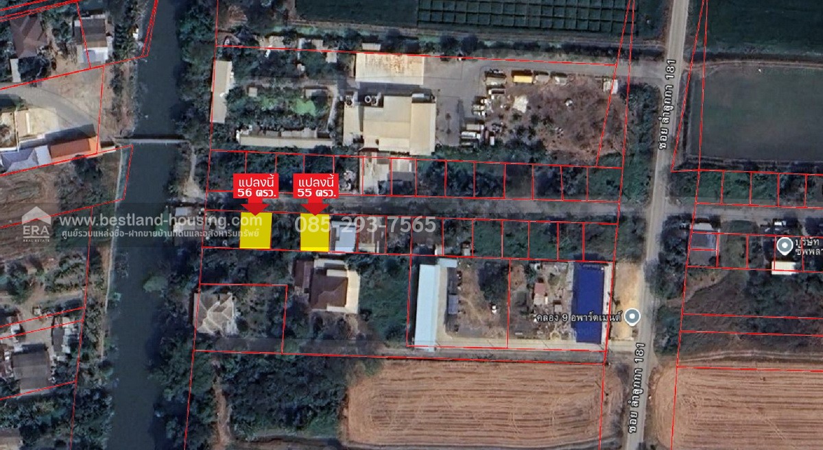 ขายที่ดินเปล่าซอยลำลูกกา181 ถนนลำลูกกา คลอง9 พื้นที่ 56 ตารางวา ขายถูกเพียง 590,000 บาท แปลงสี่เหลี่ยมผืนผ้าสวย เหมาะสร้างบ้าน