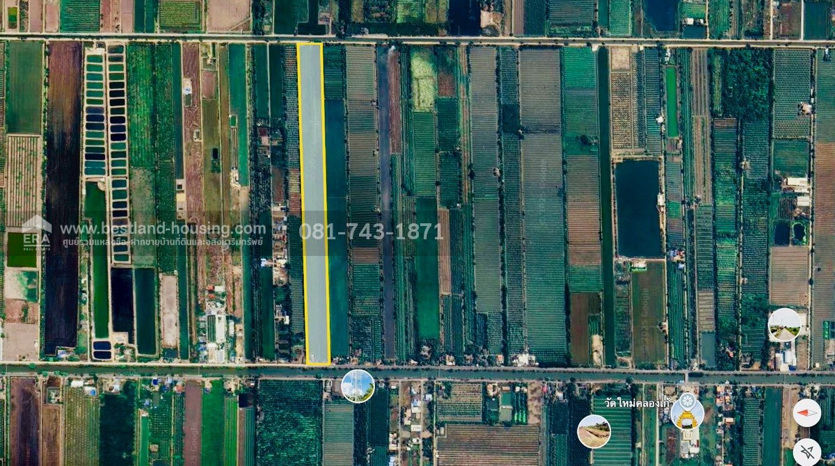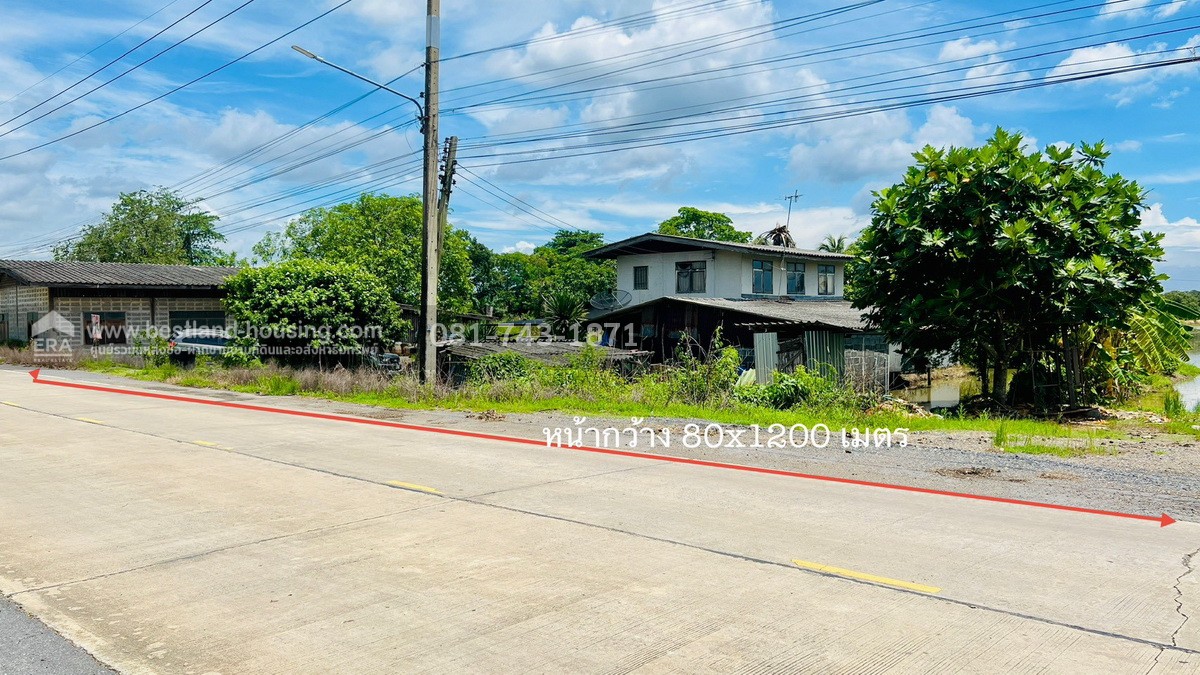 - หน้ากว้างที่ดินติดถนน 80 × 1200 เมตร (ถนนคอนกรีต)